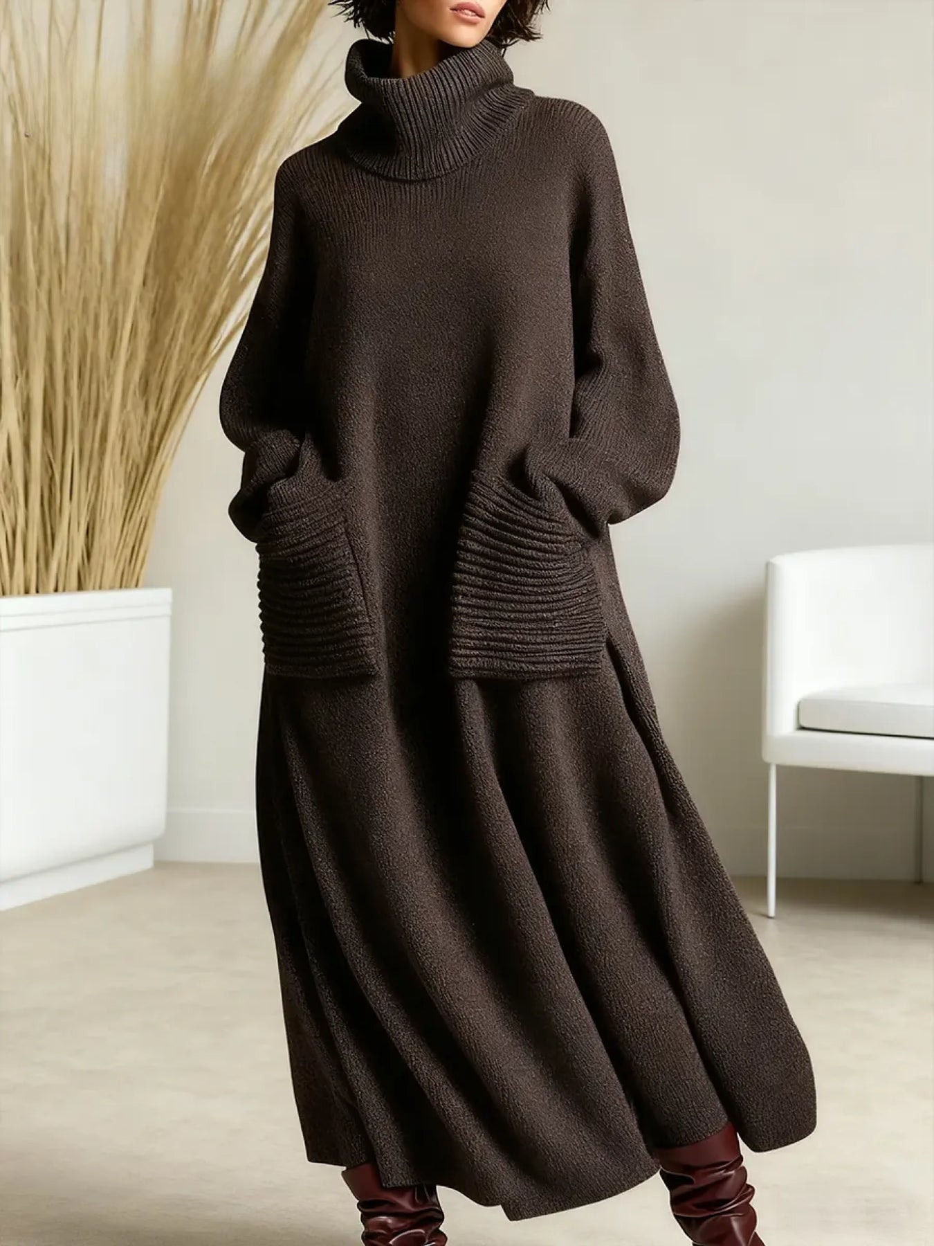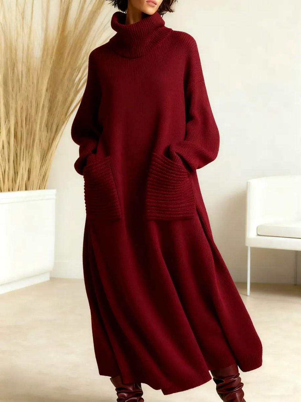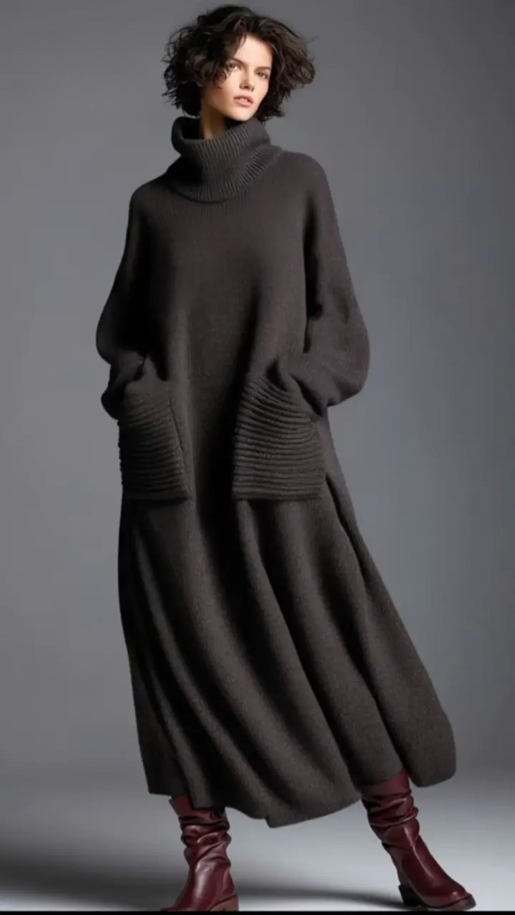 Tämä mekko antaa sinulle lämpöä, mukavuutta ja elegantin minimalistisen tyylin, joka tuntuu yhtä hyvältä kuin näyttää. Se on täydellinen valinta kylmille päiville, jolloin haluat olla sekä muodikas että rennosti pukeutunut.