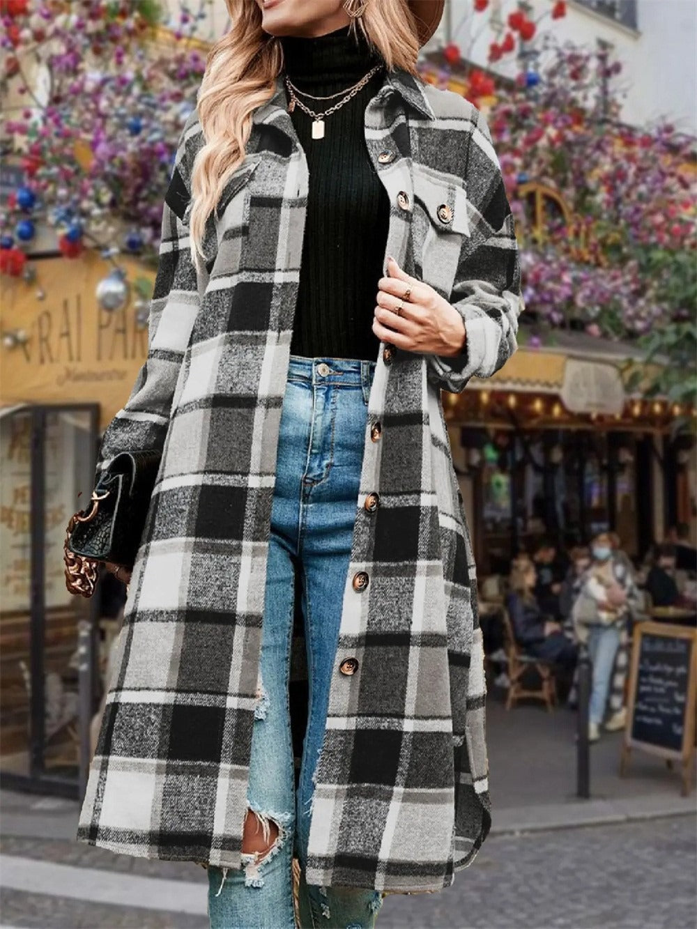 Vilma™ – Ruutukuvioinen Pitkä Takki