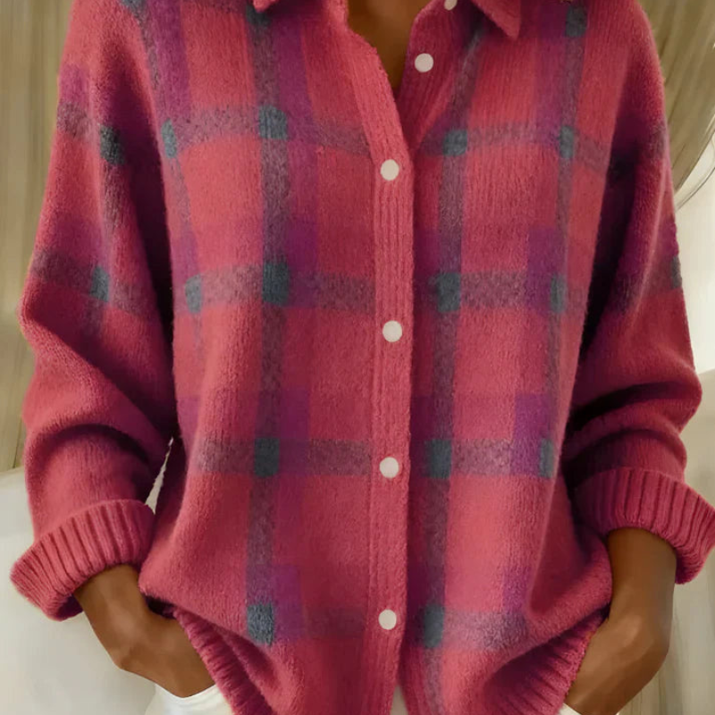 Tämä ruudullinen cardigan nappikiinnityksellä yhdistää rennon mukavuuden ja siistin ilmeen. Se on täydellinen valinta, kun haluat näyttää huolitellulta ilman jäykkää tuntumaa – kotona, töissä tai vapaa-ajalla.
